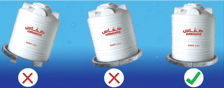 1-عند تركيب الخزان يجب ان يوضع على ارضية مستوية وصلبة لضمان سلامة الخزان من السقوط أو الكسر .